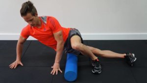 off the lateral stabilisers of the leg. These are generally very tight and contribute to the patella tracking laterally. One way to do is to use a foam roller (see diagram and get your trainer to show you), massage therapy can also be helpful with this.